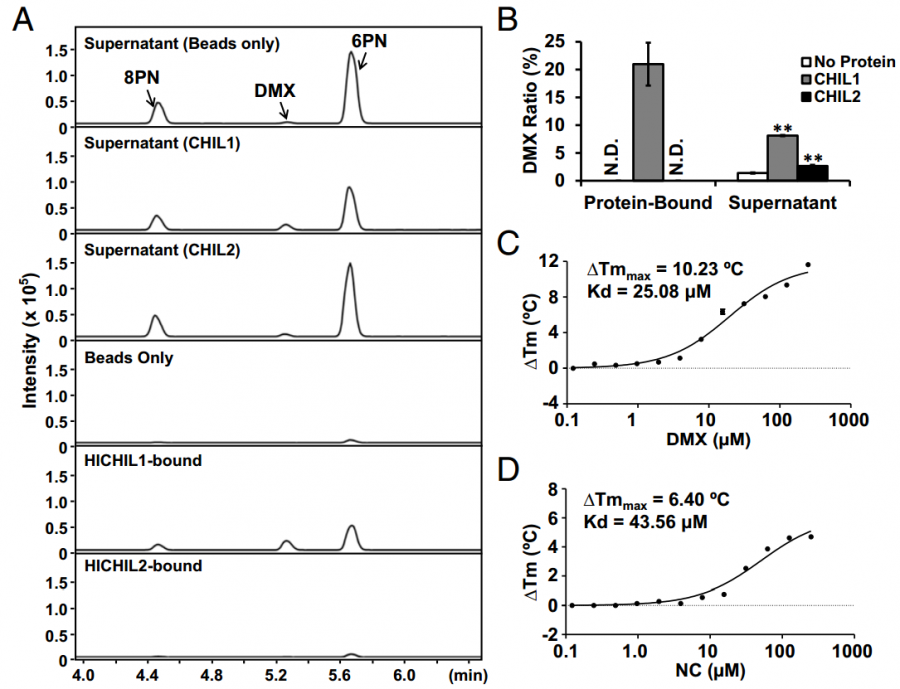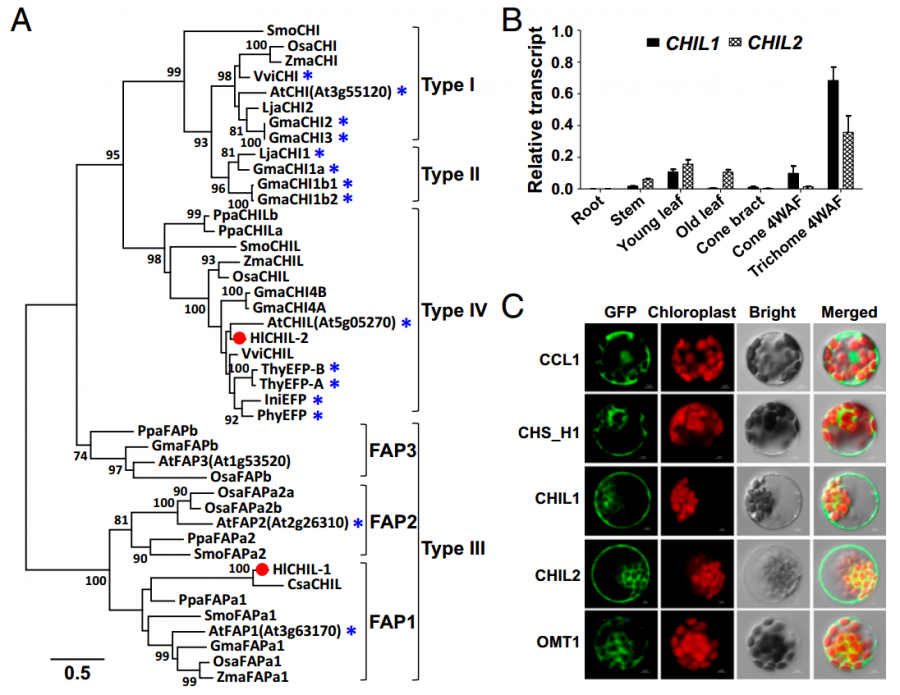 啤酒花为啤酒酿造的重要原料之一,啤酒花主要的加工产品为二氧化碳浸膏。由于二氧化碳的特殊性质,在啤酒花二氧化碳浸膏的加工过程中,啤酒花中的多酚类物质基本上残留在了啤酒花的萃余物中。啤酒花中典型的多酚类物质为异戊烯基查尔酮,它的广谱抗菌、抗炎、抗氧化、抑制多种肿瘤细胞的生长、增殖作用目前已引起广泛的关注。该论文发现并鉴定两个不具备催化活性的查尔酮异构酶(CHIL1和CHIL2)参与并调控啤酒花中黄腐醇的生物合成。 黄腐醇和脱甲基黄腐醇是啤酒花(Humulus lupulus L.)雌花腺毛特异产生的重要次生代谢产物,属于异戊烯基化查尔酮类化合物。这类化合物不但会影响啤酒的风味和品质,同时具有抗癌、抗氧化、调节人体代谢平衡等很重要的药理功效,是目前发现的功效最强的植物雌激素。在这项研究中,作者发现CHIL2能够与黄腐醇合成通路中上下游蛋白查尔酮合成酶(CHS)和膜定位的异戊烯基转移酶(PT)互作并提高它们的活性,形成的CHS/PT/CHIL2代谢复合体可以高效催化黄腐醇的生物合成;而HlCHIL1则能够结合黄腐醇代谢途径中柚皮素查尔酮和脱甲基黄腐醇等中间化合物,稳定这些化合物的开环结构,进而维持其生理活性。同时作者进一步发现CHIL2结合并提高CHS酶促活性的功能在所有的陆生植物中是保守,暗示其在植物从水生到陆生的演化过程中曾发挥着重要作用。 啤酒中含有的黄腐醇(或啤酒花醇xanthohumol)除能抑制肿瘤生长以及其他可激活癌细胞的化学酶外,它还可增加一些对人体有害的化合物的水溶性,使其能更为容易地被排泄到人体外。黄腐醇是一种黄酮类化合物,存在于多种植物中,生产啤酒的主要原料啤酒花中含量尤其丰富。目前已知黄腐醇可结合于雌激素受体而抑制雌激素作用,而这可能是阻止乳癌发生的原因。本研究同时证明利用酵母体系高效生产黄腐醇的可行性,已经申请/获得相关专利6项。这些工作为将来利用工业酵母为底盘生产啤酒花特异的萜酚类化合物,进而生产有益人体健康的“高附加值”啤酒奠定基础。 |