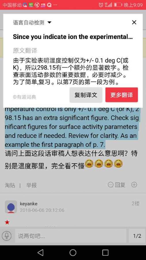 Since you indicate ion the experimental that temperature control is only +/- 0.1 deg C (or K), 298.15 has an extra significant figure. Check significant figures for surface activity parameters and reduce if needed. Review for clarity. As an example the first paragraph of p. 7. 请问上面这段话审稿人想表达什么意思啊?特别是温度那里,完全看不懂 ![]() ![]() ![]() |