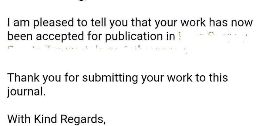 神一样的录用速度啊 三分多的二区杂志,昨上午11:14修回上传的,今晚22:14收到邮件说被录用啦。major revision修回后仅仅35个hours(也正正好35个小时)就accept啦,神一样的速度,真真真是大师啊(∩?o?∩)? 发自小木虫Android客户端 |