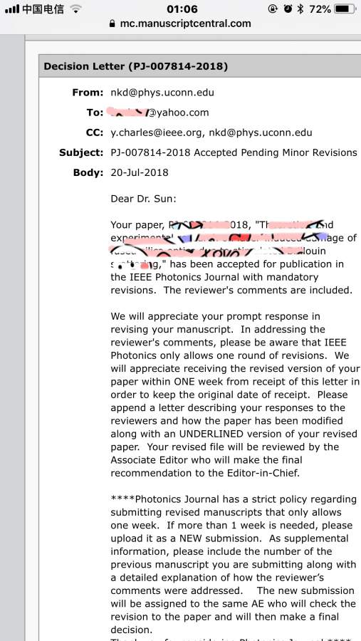 刚刚被IEEE Photonics Journal接收,虽然是三区,但对我来说已经很好了,毕竟直接修改后接收,省了我不少功夫。