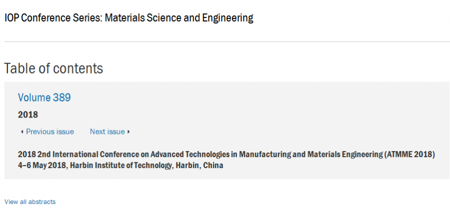 2018第二届先进技术制造与材料工程国际会议(ATMME 2018)出版信息