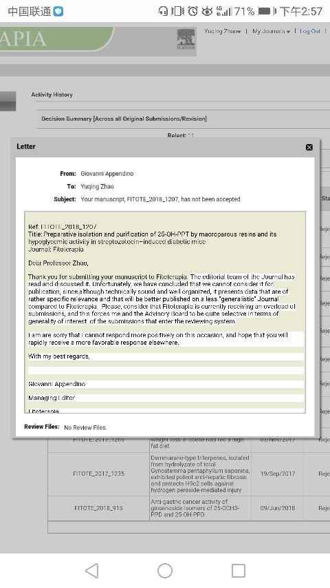 投fitoterapia杂志两天收到拒稿信,求各位大神看下到底是哪里出问题了 已有2人参与
