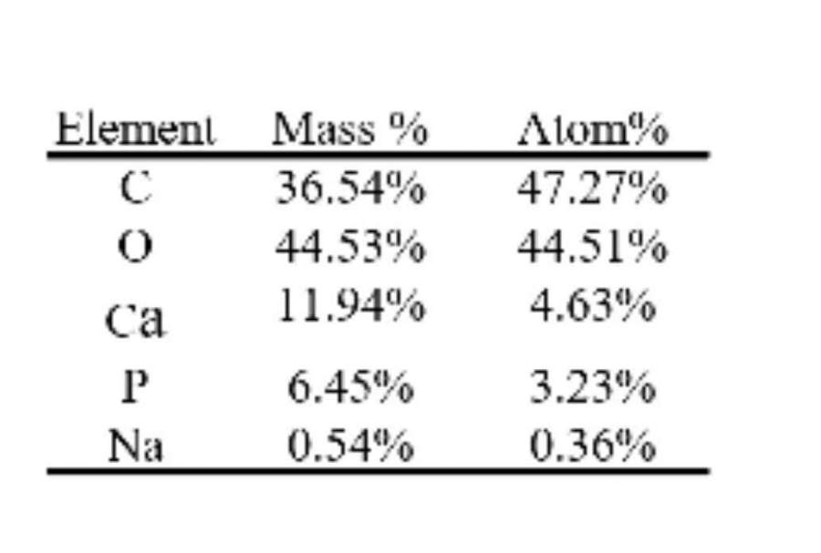 如何从拉曼图的这个表中看Ca,P两个元素的摩尔比?