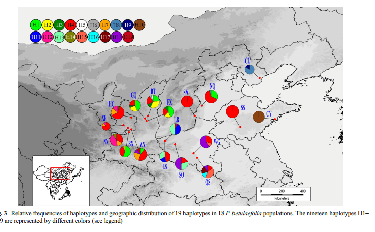各位大神 有关单倍型地理分布图的求助!!!请问这样的单倍型分布图是怎么做出来的? 已有2人参与