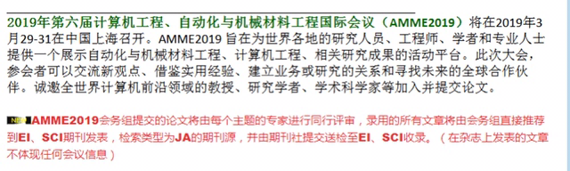 前几天投了一个会议 AMME 会议 说是录用的文章全部推荐到EI 期刊而且不体现任何会议内容但是到了缴费发现需要缴费14000 这是什么情况 这个价格正常吗 发自小木虫IOS客户端 |