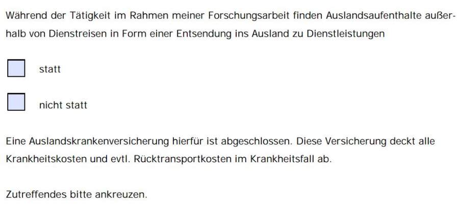各位大神,小弟有份德文表格需要填写,用谷歌翻译后,还是很难懂,有哪位可以帮我翻译下,其中“statt”和“nicht statt”该选哪个,非常感谢! Erklaerung_Auslandsversicherung.jpg |