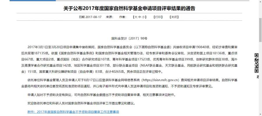 2017年8月17日基金委发了相同的通知,正式结果当天就公布了。今年2018年既然是16号发布通知,那么16号也会有结果,可能要到下午了。 (但是今年的资助比例明显低于去年的,见对比图) 2017.jpg 2018.jpg |