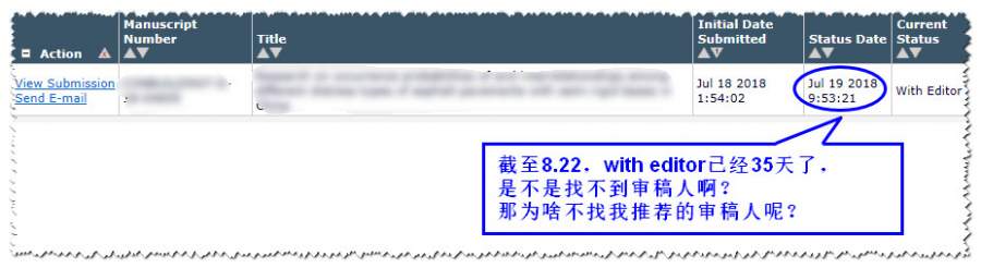 2018.8.26,已经送审,找到第一个审稿人。这说明催稿还是很有用的。虽然发了催稿信之后,编辑没有回我,但是直接找了一个审稿人,也是不错的。