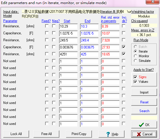 有没有专门研究电化学的虫友啊,求指点。 1 The Z' and Z" axes of the Nyquist plot should have the same scales (as in Figure 9a) but it is also necessary to add some characteristics frequencies on the diagrams. 电化学阻抗谱中nyquist的特征频率怎么标啊?是一个数值,有什么计算公式或准则吗? 2 In order to evaluate the value of the double layer capacitance I suggest to use the Brug’s formula (G.J. Brug, A.L.G. van den Eeden, M. Sluyters-Rehbach, and J. H. Sluyters, J. Electroanal. Chem. 176(1984) 275). 这个双电层电容burg公式是一篇很早的文献了,我文章中相应的部分都是用模拟等效电路来求得的这个双电层电容。这个该怎么修改啊。 3 The data given in Table 2 corresponds to a model with a Tafel kinetics. But the equivalent circuit given in Figure 10 corresponds to a faradaic current which does not follow a Tafel kinetic, then the theory is not valid and it is not possible to extract the corrosion rate from the polarization curves. 这个极化曲线tafel外切法模拟的参数在表2 中,图10 等效电路图是根据阻抗谱模拟的啊,编辑怎么说里面有法拉第电流与极化曲线没关系,说这个原理无效呢,很是困惑。 |