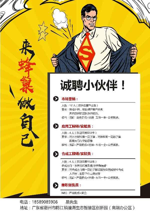 性别:男女不限 年龄:不限 要求:对丙烯酸乳液有一定合成经验 对水性丙烯酸乳液有大生产经验 发自小木虫Android客户端 |