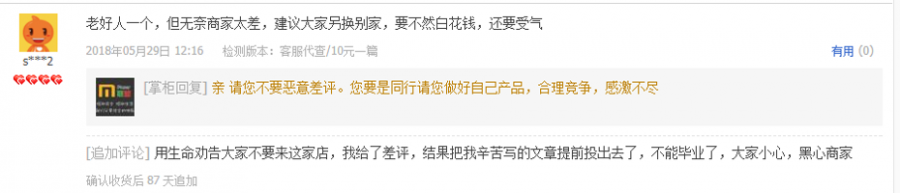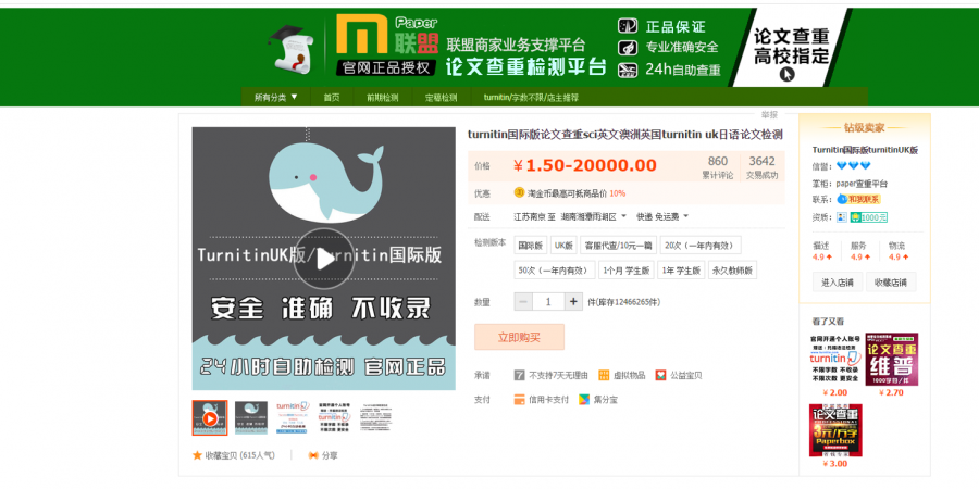 大家SCI论文查重,千万不要去这家店,https://item.taobao.com/item.htm ... ;amp;_u=5r35hjd2219 turnitin国际版论文查重sci英文澳洲英国turnitin uk日语论文检测,客服是paper查重平台。客服黑心商,把我查重的文章在线了,现在我的文章投不了,大家查重还是要慎重。现在拿他也没有一点办法,希望各位虫友不要在这里吃亏了 图片2.png 92a08fa8a2738ba1e4c8d4bc9a64654.png 图片1.png 图片3.png |