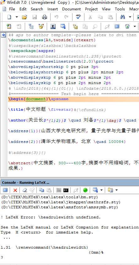 如何解决《物理学报》的TeX模版无法正确编译的问题?问题如下图所示: @Monash2011 |