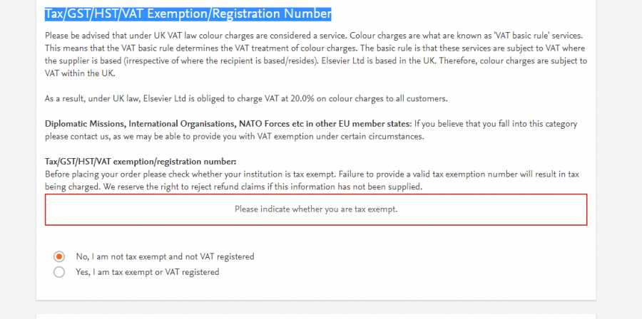 论文刚接收,请问Tax/GST/HST/VAT Exemption/Registration Number怎么填
