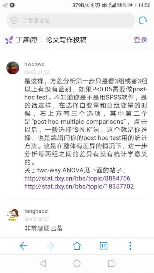 英文投稿,统计学方法ANOVA中post hoc test 是什么意思?