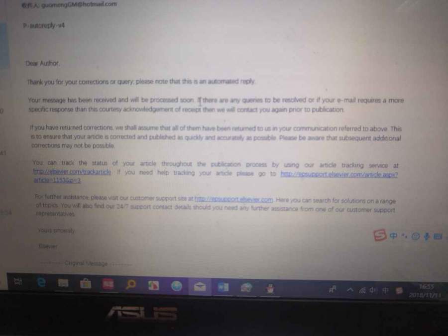 是在爱思维尔在线校稿系统里边进行的,我已经发了邮件给corrections.esch@elsevier.spitech.com,然后是自动回复 @Monash2011 发自小木虫Android客户端 |