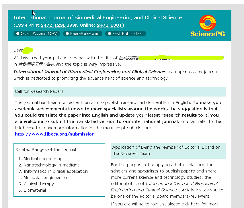 [交流] 收到邮件,说一篇中文文献,能否转到英文文献,这种是真的假的?