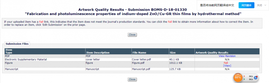 投稿bulletin of materials science 有Artwork Quality Results,需要修改figure,提示语是在上一层 edit submission 可是上一层只有view submission 和Artwork Quality Results 想问这是怎么回事 查新.png 查新1.png |