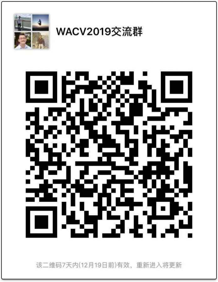 如题,小弟今年准备参加wacv 2019. 请问各位大佬有明年一月份同去夏威夷参会的吗? 有的话可以一起坐飞机去或者做个室友分摊下住宿成本啥的~ 小弟微信号fentuoli2016 1984552929.jpg |