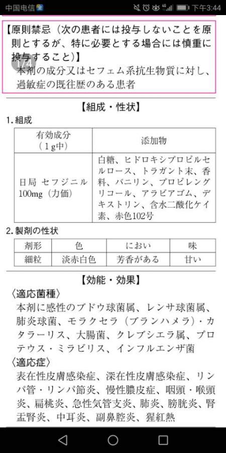 翻译日文版头孢地尼细粒剂,只要翻译添加物就可以,谢谢!
