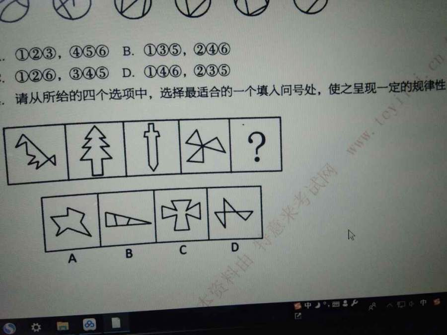 我觉得选C,观察图形不相同也不相似,考虑属性没规律,再考虑数量,四个图形都是一笔画0奇点,排除B,图1图4为不对称图形,图2图3对称图形,图5按规矩为对称图形选C 发自小木虫Android客户端 |