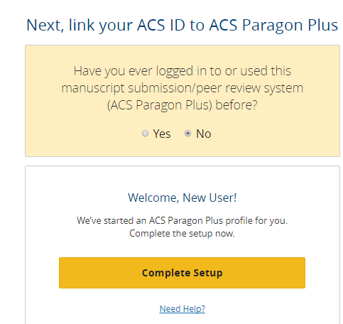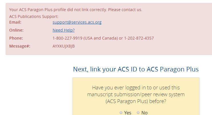 ACS 数据库投稿的时候 新建了一个ID 创建 ACS Paragon Plus profile 的时候(图1,点了complete setup)总是出现图2 (Your ACS Paragon Plus profile did not link correctly. Please contact us.)的情况 是怎么回事呀? 有没有遇到的朋友 告诉一下怎么解决 1.png 2.png |