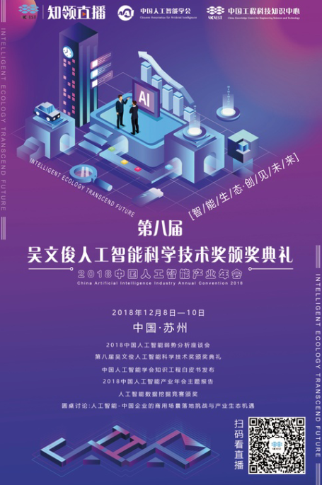 知领直播 | 第八届吴文俊人工智能科学技术奖颁奖典礼暨2018中国人工智能产业年会