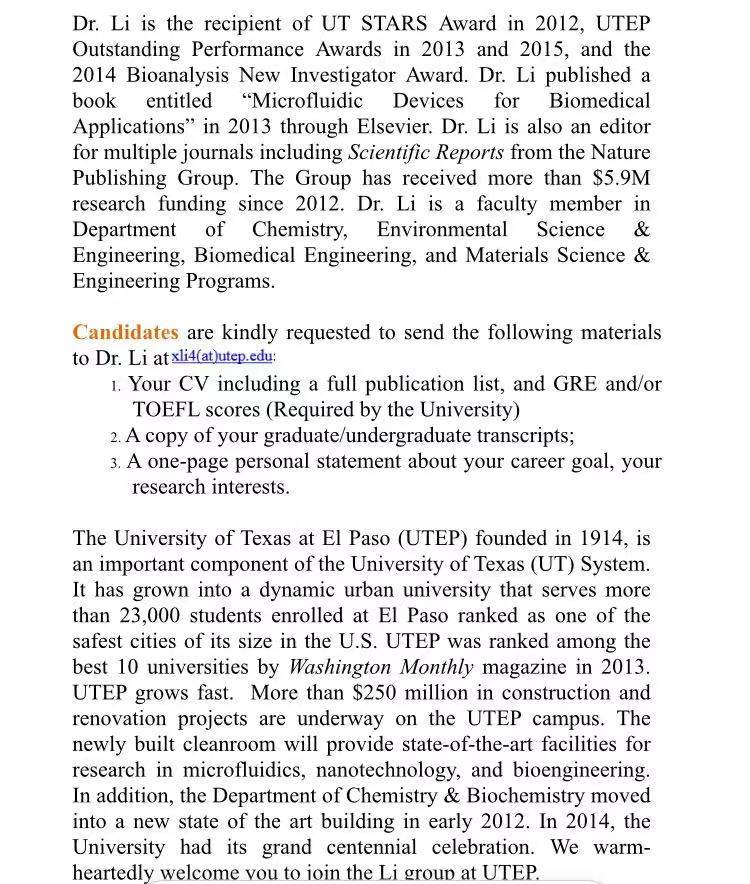 有意向者清直接联系导师 Dr. XiuJun (James) Li,xli4@utep.edu,附上个人简历,成绩单,个人陈述。 具体情况如图: 492968953.jpg 580052083.jpg |