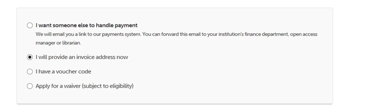 刚刚接收一篇RSC advances ,让调写article licensing,求助各位近期头中过的友友下面的这几个问题该怎么回答。我需要先自己垫付,再到学校报销,是选择I will provide an invoice address now还是第一个。另外,first name那栏是写自己的还是导师的还是学校的,这个会不会影响报销抬头。感谢各位了 发自小木虫IOS客户端 |