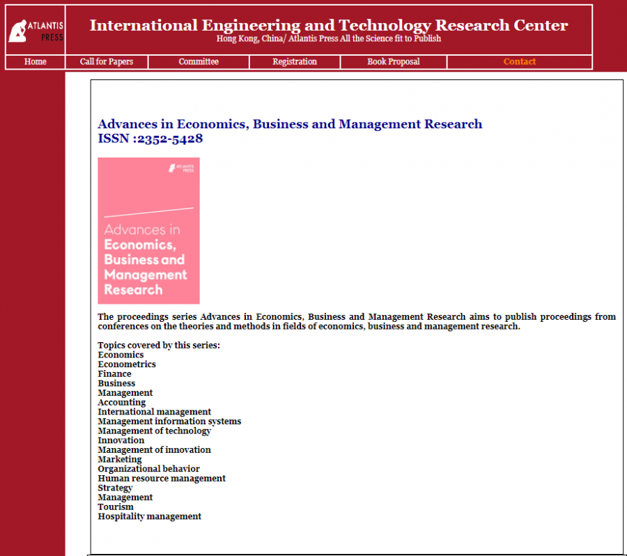 法国Atlantis Press出版社 (AEBMR ISSN:2352-5428)(ASSEHR ISSN:2352-5398)