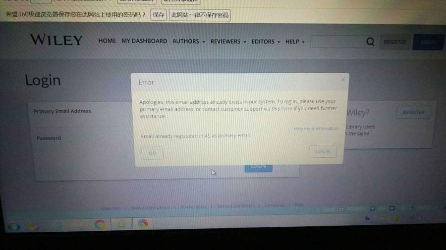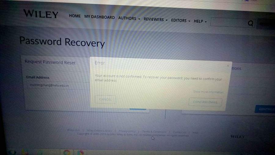 求助!求助! Wiley的author service登陆界面,输入自己的邮箱以及密码登陆不上去,显示密码错误!然后想修改密码,还无法修改,说我的邮箱账号在Wiley系统有记录,无法修改密码,该怎么办?朋友们,有人能指点一下吗? 本人急着进去作者中心签署license agreement!很急!!!!希望了解的人帮忙一下!谢谢,谢谢! 发自小木虫Android客户端 |