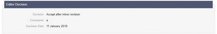 微信截图_20190122131309.jpg 各位,投稿mdpi期刊后一次大修一次小修,然后一直是revised version review状态,等了一个月了,状态一直如图所示,下方有个editor decision显示:decision accept after minor revision,comments:a。想请问,这个期刊我看了一般速度都很快,为啥我这个状态持续那么久,也不敢催。 |