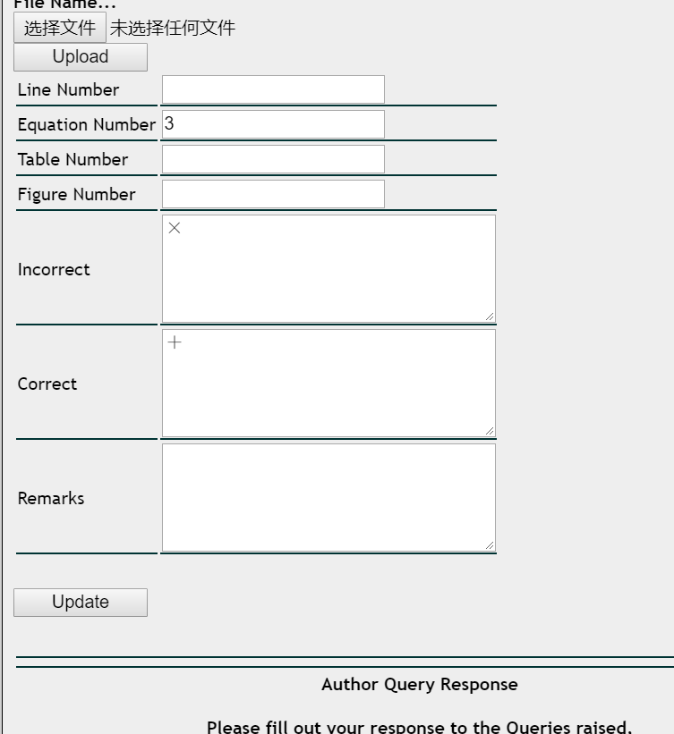 发现论文中有个公式的分母的加号编辑成了乘号,需要修改,这对后面的数据没什么影响,因为我是用正确的公式计算的,请问下这里填写不正确的内容是需要输入整个公式还是仅仅输入这个符号就可以了?另外还想问下我想说明这对数据没有影响是应该在remarks里写吗还是在下面的Author Query Response? QQ截图20190125094409.png |