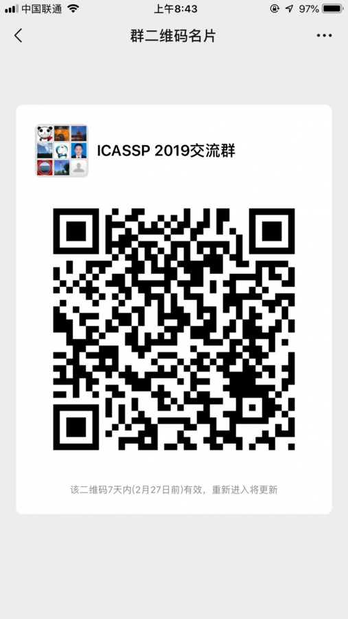 ICASSP出结果了,参会的虫友们来交流一下呗。我建了一个微信群,大家交流一下参会手续之类的。毕竟英国今年要脱欧,手续会不会和以前不一样? 发自小木虫IOS客户端 |