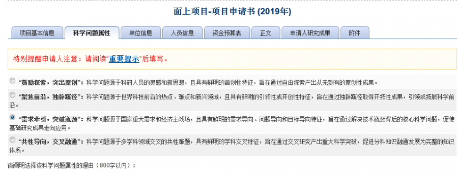 大家探讨一下2019年面上项目中“科学问题属性”该如何选择和填写?