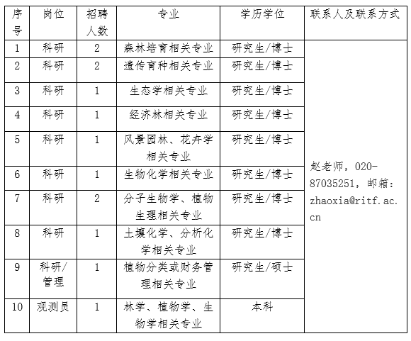 中国林业科学研究院热带林业研究所(广州)2019年度公开招聘高校毕业生