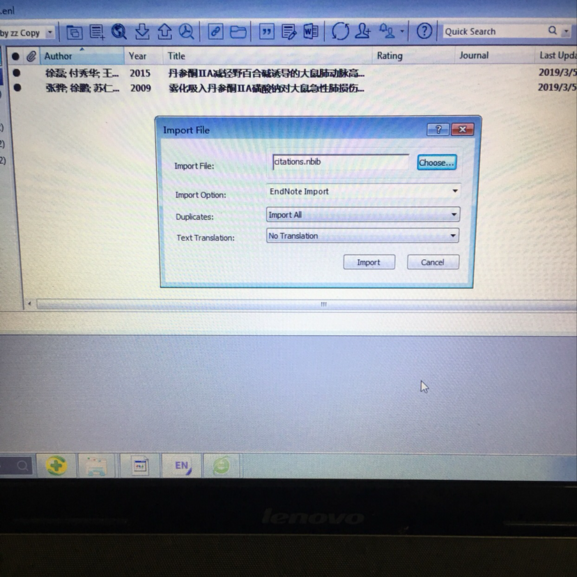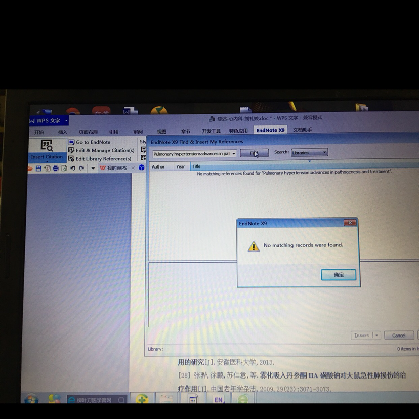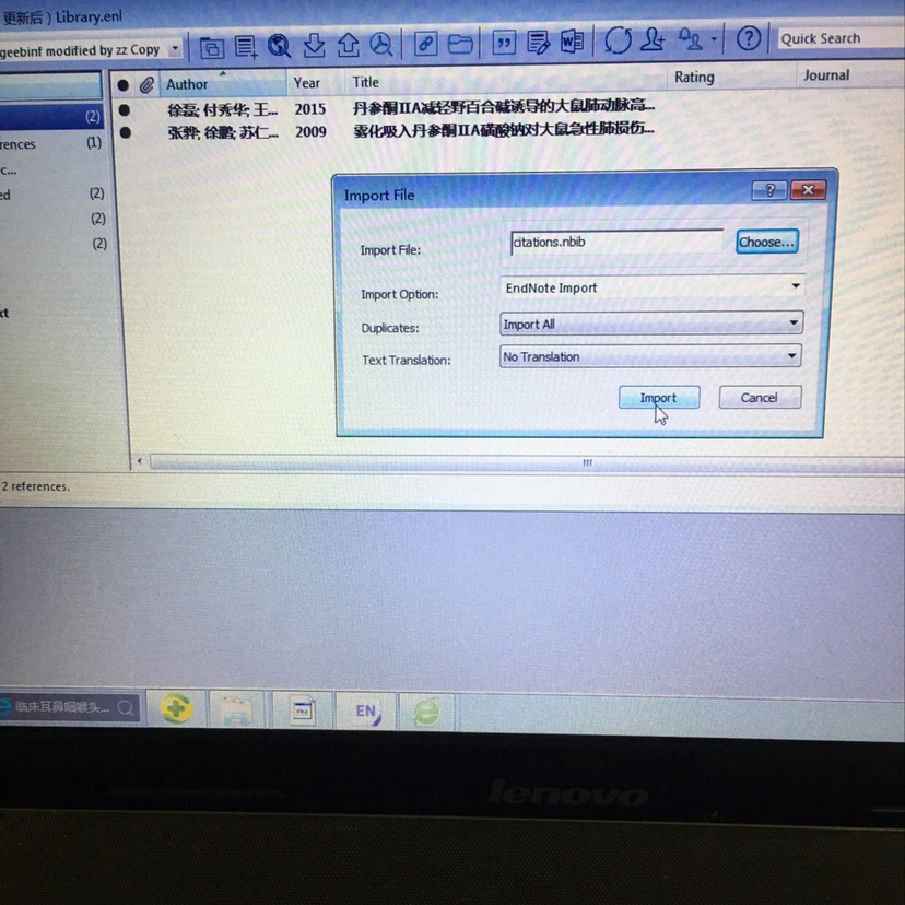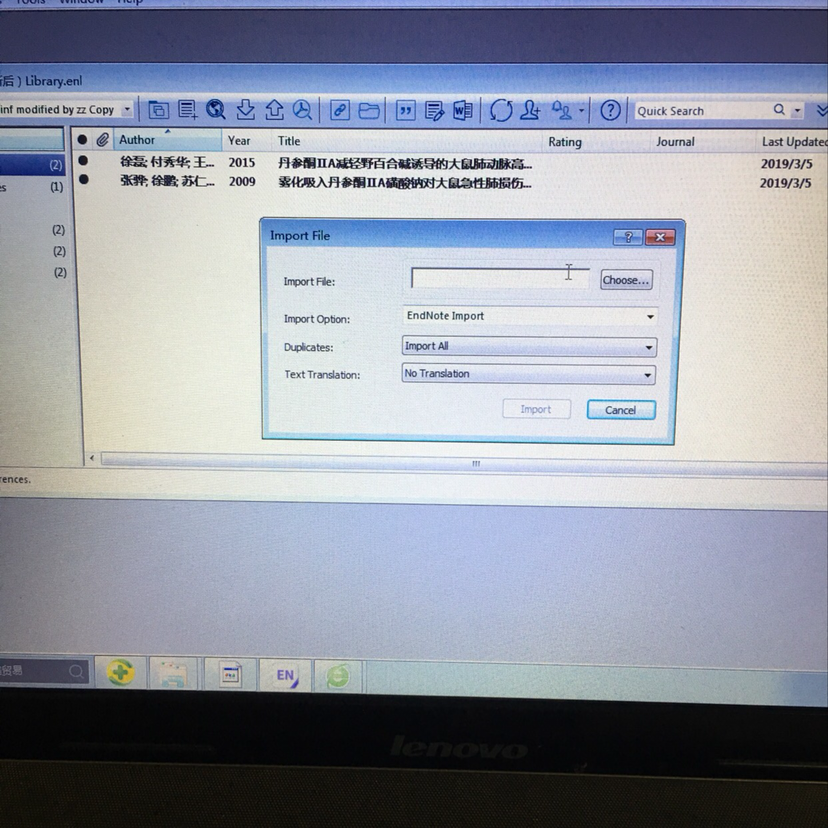 1.点击插入文献,显示没有匹配记录查询,我的endnoteLibrary里明明就有文献在里面. 2.今天点击import导入已经下载到桌面的英文文献,一直到导入不了,昨天还中英文文献都可导入,不知到为什么会突然这样,求指导 发自小木虫IOS客户端 |