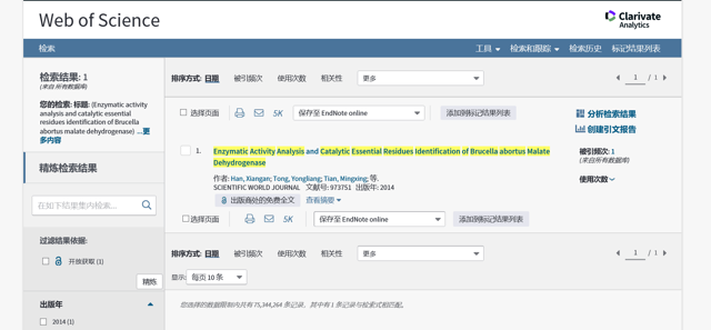 Enzymatic Activity Analysis and Catalytic Essential Residues Identification of Brucella abortus Malate Dehydrogenase[J]. The Scientific World Journal, 2014. 发自小木虫IOS客户端 |