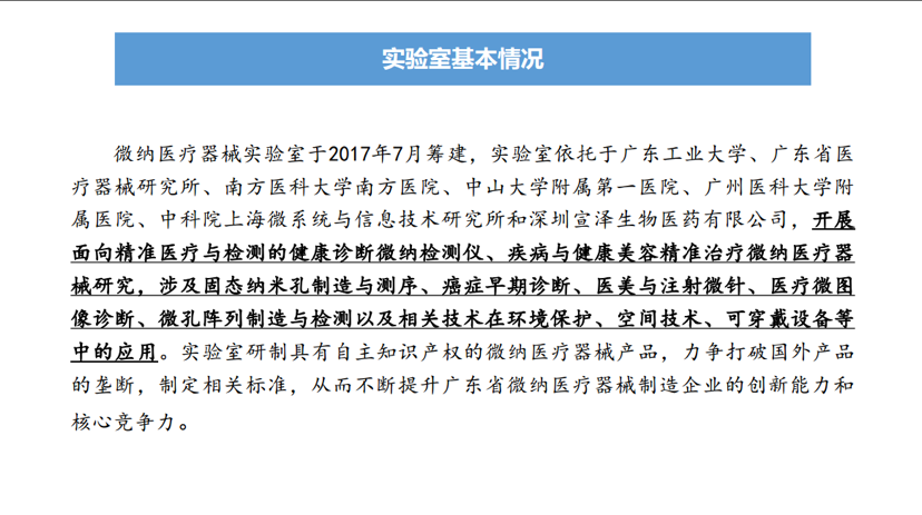 微纳医疗器械实验室于2017年7月筹建, 实验室依托于广东工业大学、 广东省医疗器械研究所、 南方医科大学南方医院、 中山大学附属第一医院、 广州医科大学附属医院、 中科院上海微系统与信息技术研究所和深圳宣泽生物医药有限公司, 开展面向精准医疗与检测的健康诊断微纳检测仪、 疾病与健康美容精准治疗微纳医疗器械研究, 涉及固态纳米孔制造与测序、 癌症早期诊断、 医美与注射微针、 医疗微图像诊断、 微孔阵列制造与检测以及相关技术在环境保护、 空间技术、 可穿戴设备等中的应用。 实验室研制具有自主知识产权的微纳医疗器械产品, 力争打破国外产品 的垄断, 制定相关标准, 从而不断提升广东省微纳医疗器械制造企业的创新能力和核心竞争力。 实验室名额充足,现招收品学兼优硕士研究生,也可调剂,有意者请与袁志山老师联系。 发自小木虫IOS客户端 |