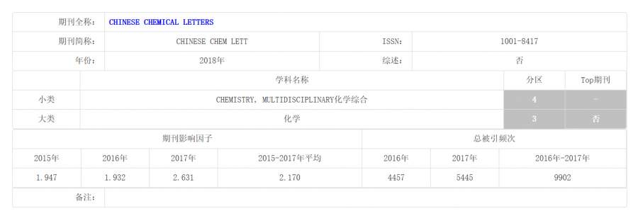 | Chinese Chemical Letters现在的即时影响因子大概多少?谢谢! |