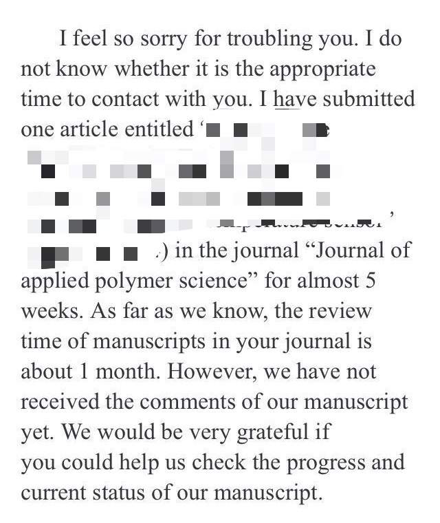 2月11日投了journal of applied polymer science,期间3月21日催过一次,编辑回复已经送审,但现在已经快4月11号了,快60天了,本人急着毕业,不清楚现在能不能以毕业为由进行第二次催稿问意见呢?希望广大虫友给点意见,谢谢~ 1.jpg 2.png@Monash2011 |
