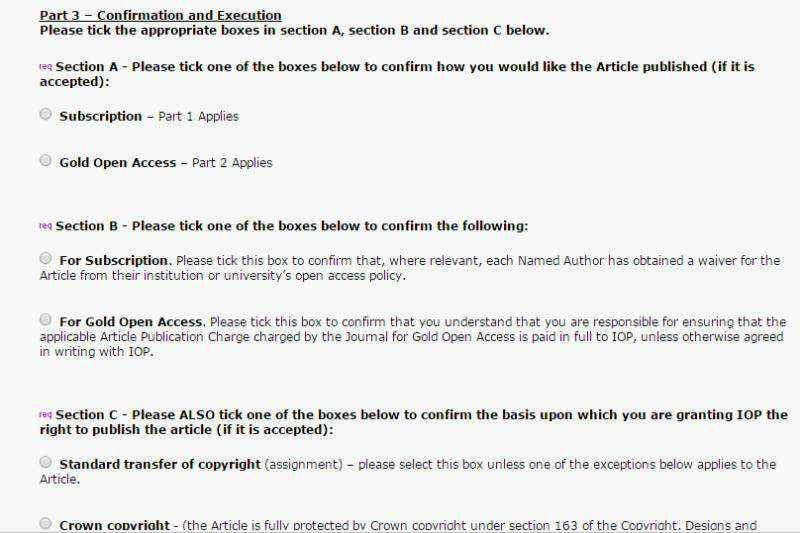 请问投过iop期刊的各位,copyright form 的这三个框你们是怎么填的,我已经被退回3次了,欲哭无泪呀!拜托各位