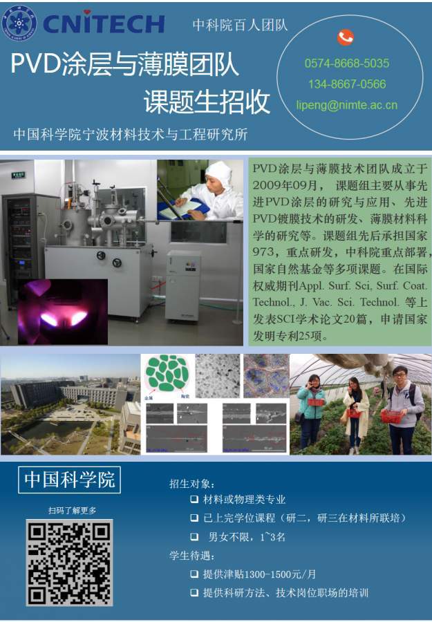 中国科学院宁波材料技术与工程研究所-PVD涂层与薄膜团队-招收课题研究生