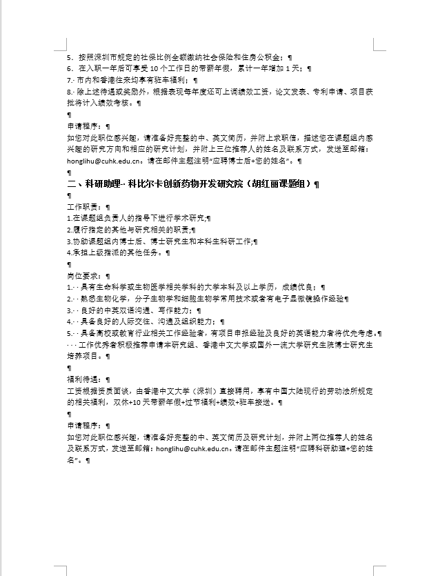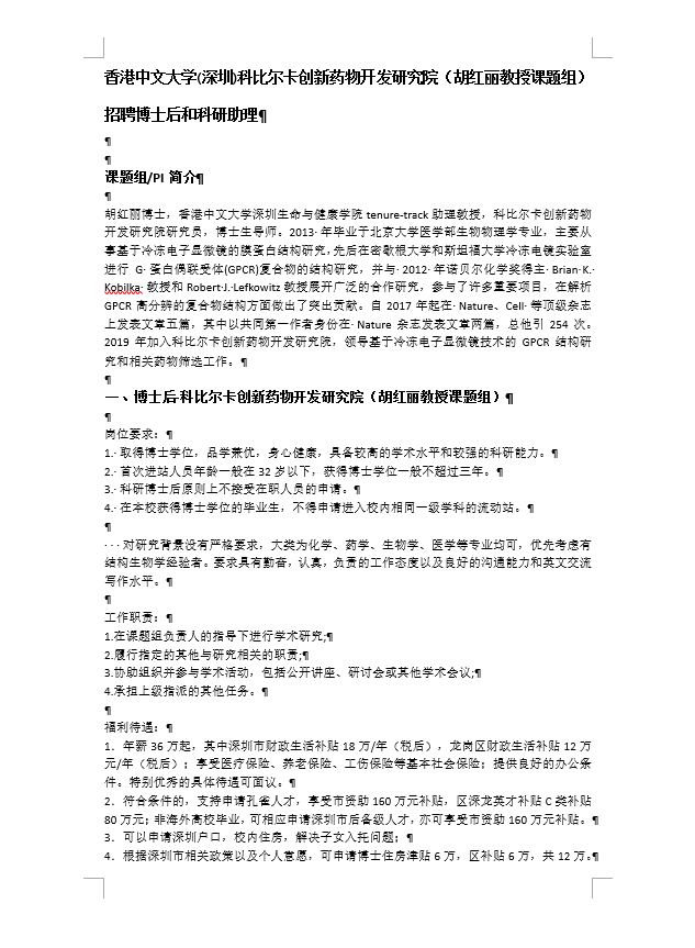 ¸ßн³ÏƸ|Ïã¸ÛÖÐÎÄ´óѧ(ÉîÛÚ)¿Æ±È¶û¿¨´´ÐÂÒ©Î↑·¢Ñо¿Ôº£¨ºúºìÀö½ÌÊÚ¿ÎÌâ×飩ÕÐÆ¸²©Ê