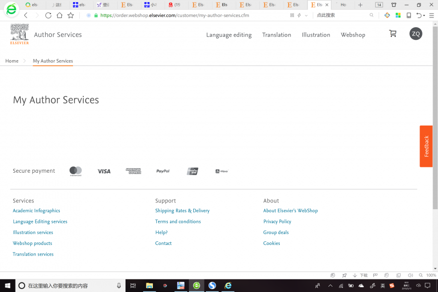 请问有人最近用Elsevier润色吗? 我用了Elsevier润色,现在发邮件告诉我已经润色好了,让我去下载。可是我去邮件里面的链接里看了,什么都没有,页面如下。求助! my author sevices.png |