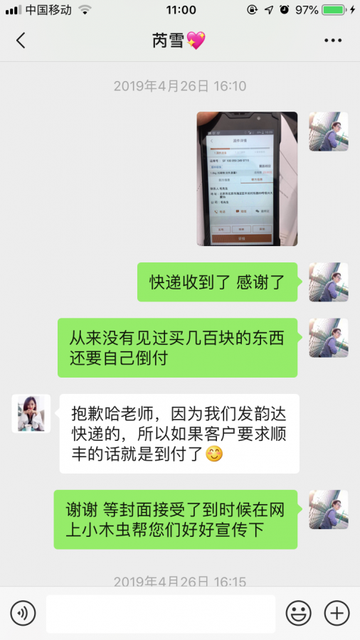 图一是让他参考的图,起码稍微修改,图二是设计后的图,没有中。图三是支付三千块,快递费到付。 发自小木虫IOS客户端 |