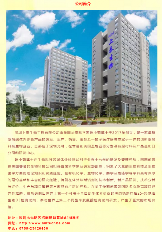 任职要求: 1、近五年内从世界排名前150名大学获得生物学、分子生物学、生物工程等相关专业博士学位; 2、具有良好的分子生物学和生物工程领域的理论知识和实践经验; 3、具有克隆、蛋白质表达和纯化方面的实际工作经验,能独立制定和执行蛋白质表达和纯化方案; 4、具有良好的英文阅读和写作能力; 5、愿意学习,具有较强的事业心和良好的团队精神。 岗位职责: 1、根据公司发展计划的需求,制定蛋白质表达及纯化方案; 2、具体实施并完成纯化方案,并将合格的产品转交到试剂研发部; 3、与试剂研发部密切合作,解决工作中可能碰到的问题; 4、根据市场需求,提出新的项目研发计划并制定实施方案; 5、带领蛋白质工程团队保质按时完成各项研发生产工作。 待遇:享受法律规定的各种福利。工资面议。公司推荐申请孔雀人才计划和鸿鹄人才计划。 有意者请发送简历到邮箱:cxr@amtechbe.com Job Requirements: Ph.D in Biology, Biochemistry, Biomedical Engineering or related field with 5+ yrs academia or industry experience developing protein purification processes to support research and functional protein production. • Successful candidates should have a strong molecular biology experience with strong cloning experience and a background in protein engineering applications including hands-on experience in protein purification, protein expression, and functional protein activity screens. • Will work independently in a fast-paced environment with very supportive teammates. • Independently designs experimental plans, analyzes experimental data, generates laboratory protocols, and writes technical reports, quantitative analyses,and product summaries. • Troubleshoots and solves difficult problems in the design/execution of development projects. Investigates, creates, and incorporates new methods and technologies to improve the effectiveness of development workflows. • Maintains accurate lab notebook to support protection of intellectual property in accordance with relevant required standards. • Presents data at scientific conferences (external and internal). Interacts closely with other internal departments (i.e., R&D,Production,Marketing,Business Development, Quality, Operations and/or Technical Services). • Complies with all company safety, training, and quality regulations. In addition to a competitive compensation package, company also offers a comprehensive benefits package from government funding. Company Information.png [ 来自版块群 广东 ] |