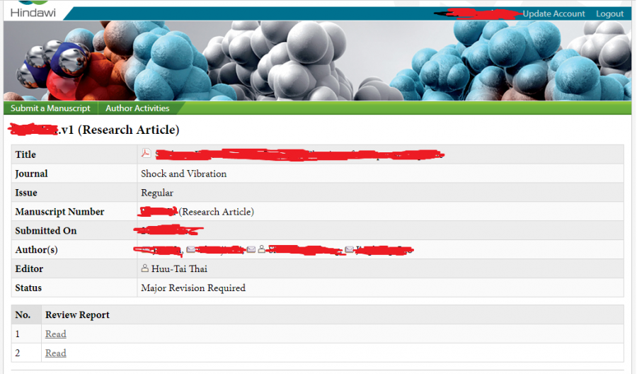 在Shock and Vibration 投稿系统界面中,登录以后,如下所示: 然后点击左侧的铅笔位置,出现以下界面: 没有找到可以上传修改稿的按钮或超链接!!! 麻烦各位指导一下,谢谢! P1.png P2.png |