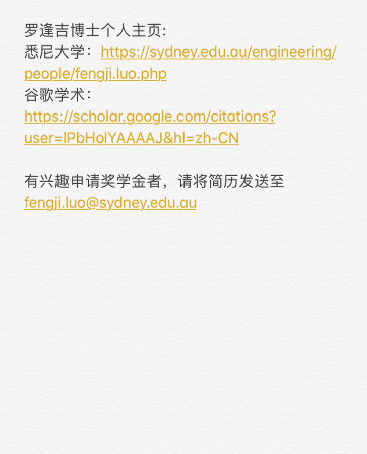 澳大利亚悉尼大学工程学院罗逢吉(fengji luo)博士提供全额博士奖学金(三年)招聘一名博士研究生。罗博士研究领域为建筑能量管理系统,电能需求侧管理,建筑并网技术(building-to-grid),微型电网,以及计算智能在能源系统中的应用。研究方法侧重于建筑科学,电力工程,与计算机科学的交叉学科研究。 希望招聘的博士研究生符合如下条件: 1. 具有中国985大学计算机科学,电力工程,建筑环境,软件工程,应用数学, 自动控制等专业的学士或硕士学位。 2. 成绩优秀,对科学研究工作有较高兴趣和热情。 3. 具备较好的编程能力。 4. 自律性高,有解决困难问题的意愿和能力。 有兴趣申请奖学金者,请将简历发送至:fengji.luo@sydney.edu.au 发自小木虫IOS客户端 |
