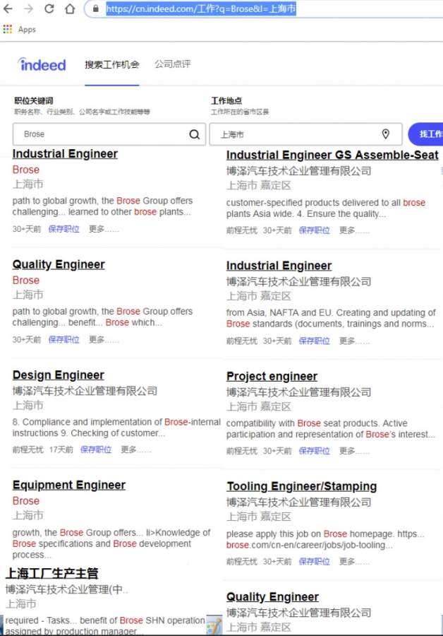 Try these: https://jobs.51job.com/shanghai- ... ml?s=01&t=0 https://cn.indeed.com/工作?q=发泡塑料&l= |