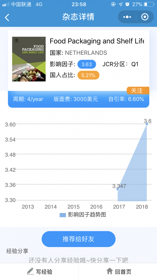 为什么在sci期刊查询里找不到food packaging and shelf life了 已有5人参与